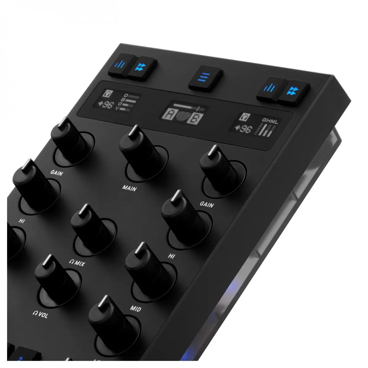 - Tre display OLED per le informazioni chiave sul mixaggio