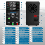 - 4️⃣?Caratteristiche e protezione?: ingresso commutabile AC110V/220V, protezione da sovracorrente OCP (regolabile), protezione da sovratensione OVP (fissa), ventola a temperatura controllata, impostazione dello stato di uscita OPN*, regolazione della luminosità dello schermo, ecc. A Questo minuscolo dispositivo è dotato di una serie di pratiche funzioni! !