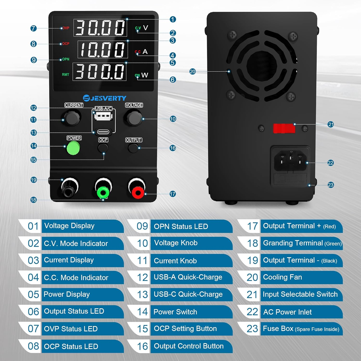 - 6️⃣?Articoli inclusi e servizio clienti?: 1 unità SPS-M, 1 cavo di alimentazione*, 1 set di puntali*, 1 manuale di istruzioni (informazioni di contatto incluse). Forniamo supporto tecnico professionale. In caso di problemi o domande sul tuo ordine, non esitare a contattare il servizio clienti Jesverty tramite Amazon o e-mail.