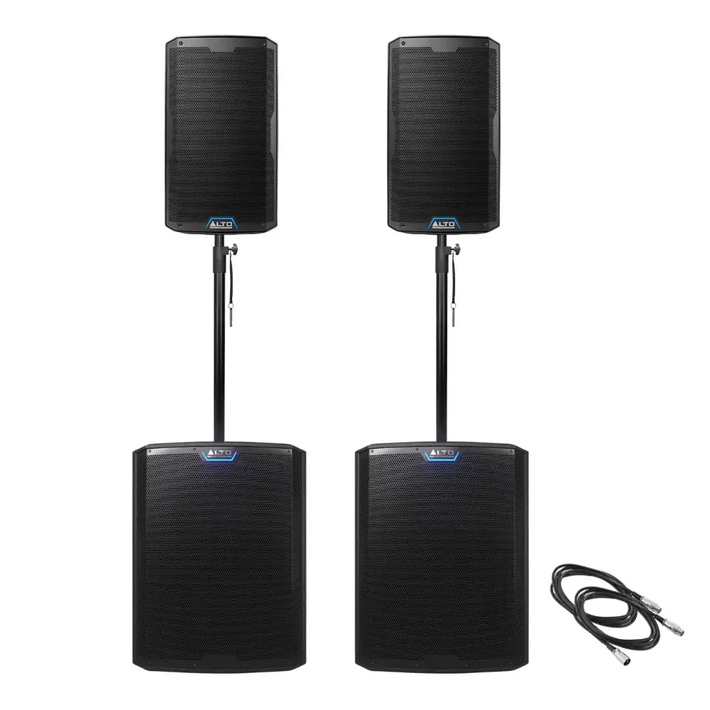 Set composto da 2 x Alto TS412 satelliti, 2 x Alto TS18S Subwoofer, 2 x Barra distanziale regolabile da 935mm a 1485mm , 2 x Cavo XLR 2,5M