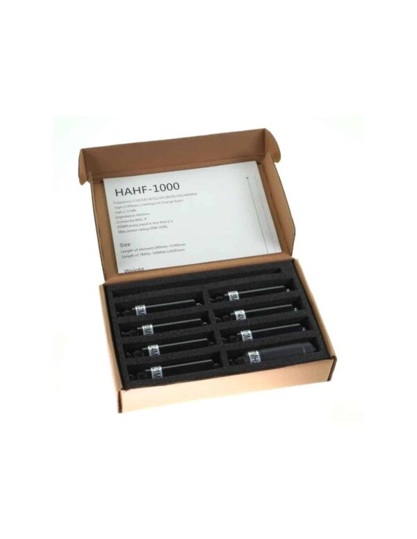 L'HAHF-1000 è un'antenna a onde corte, leggera e compatta, progettata per il funzionamento portatile. È semplice da utilizzare e supporta un massimo di 50 watt (SSB).