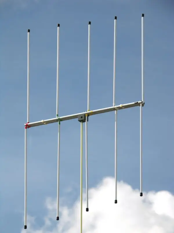 Il guadagno è di 5 dBi per la banda 2m e 7 dBi per la banda 70cm.