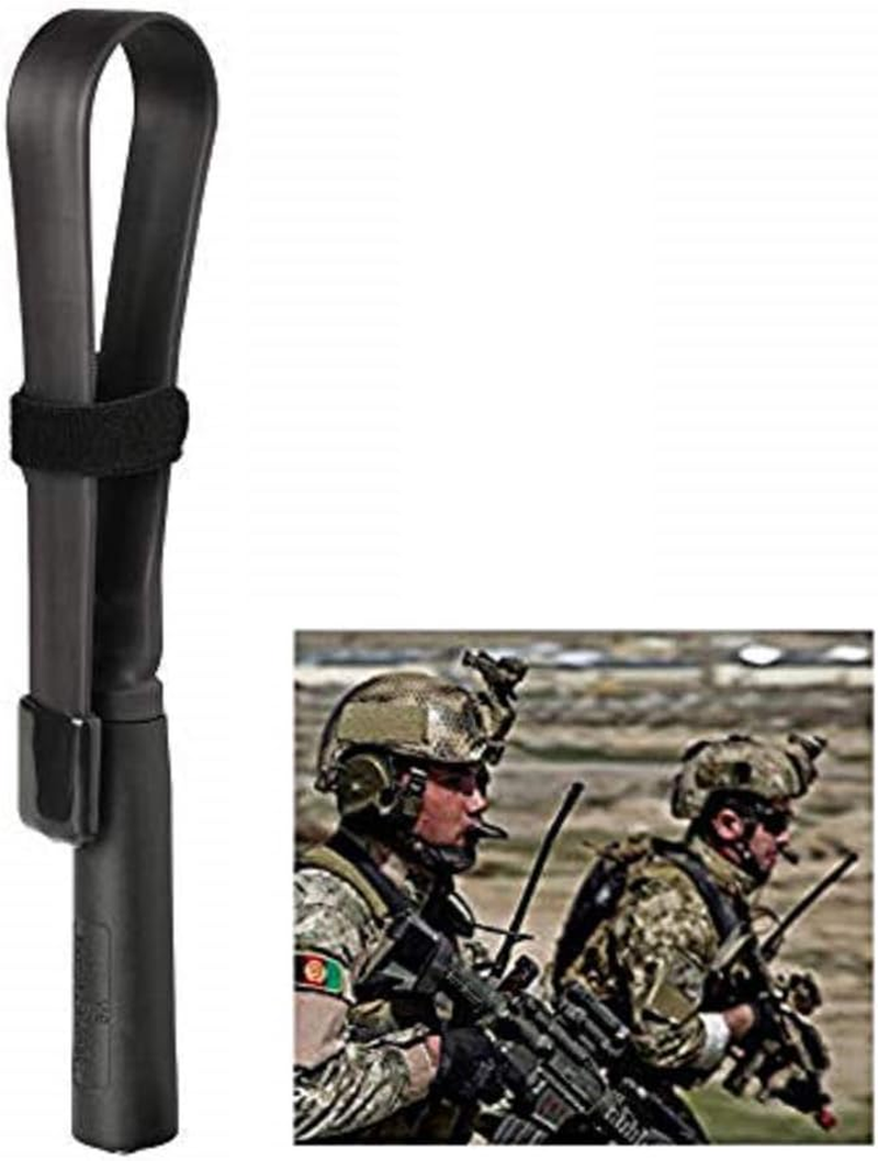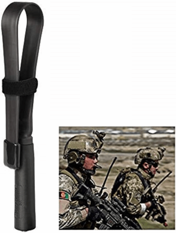 Antenna tattica pieghevole compatibile con una vasta gamma di dispositivi portatili, ideale per l'uso in radiocomunicazione.
