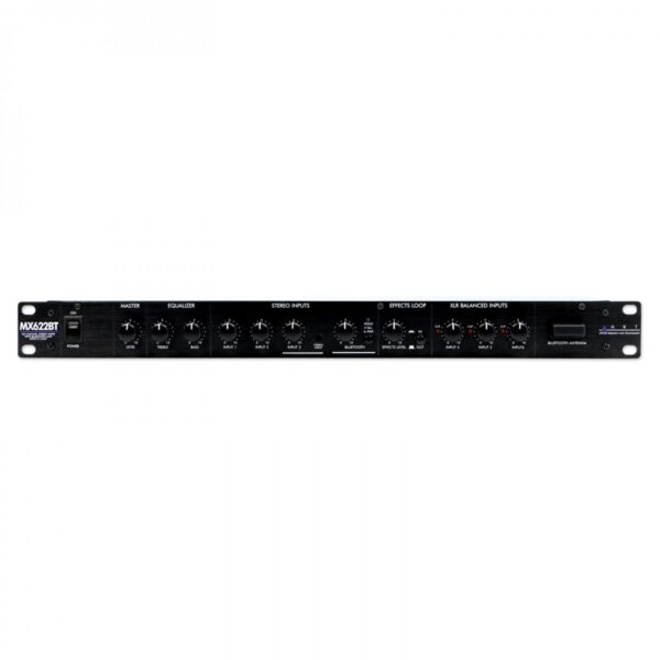 - Impedenza d’ingresso: 600/22K Ohm ingressi Mic/Line XLR, 10K Ohm ingressi RCA, 22K Ohm, ritorni EFX da 1/4 di pollice