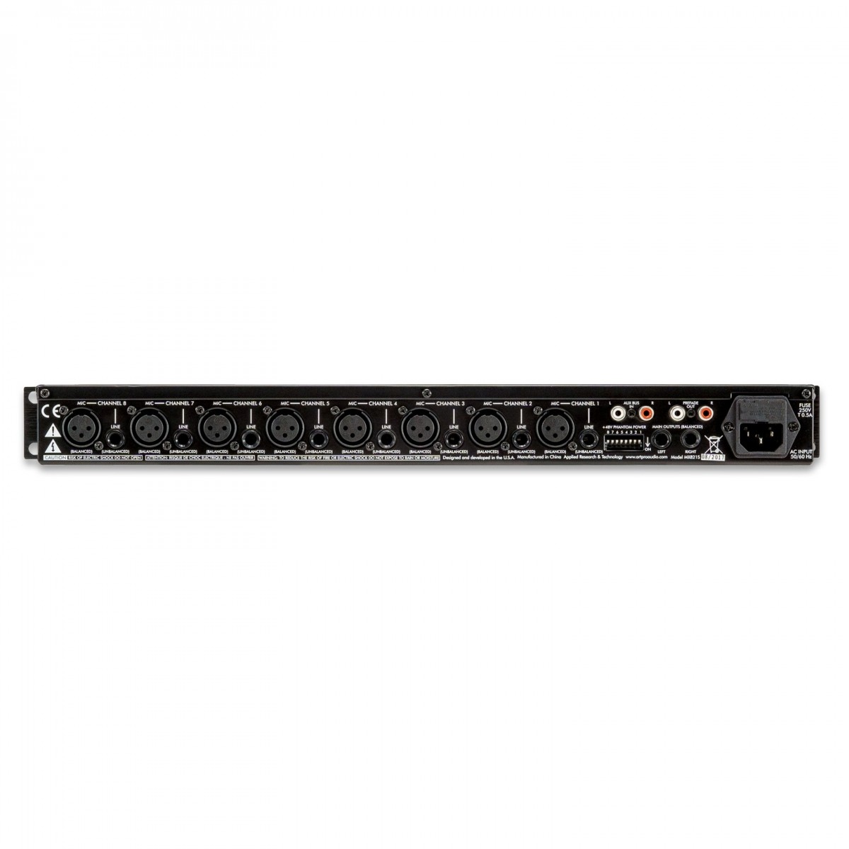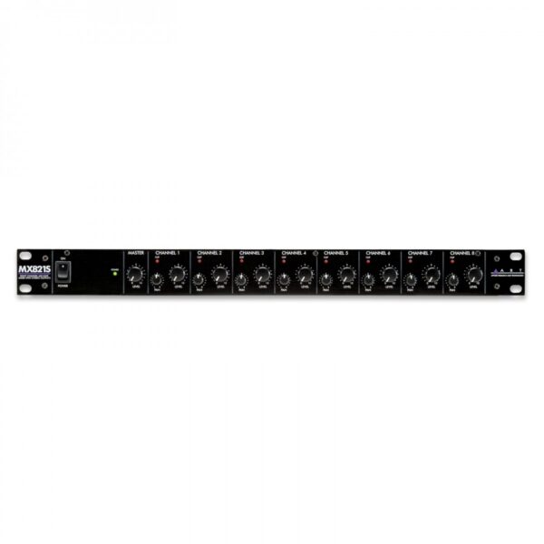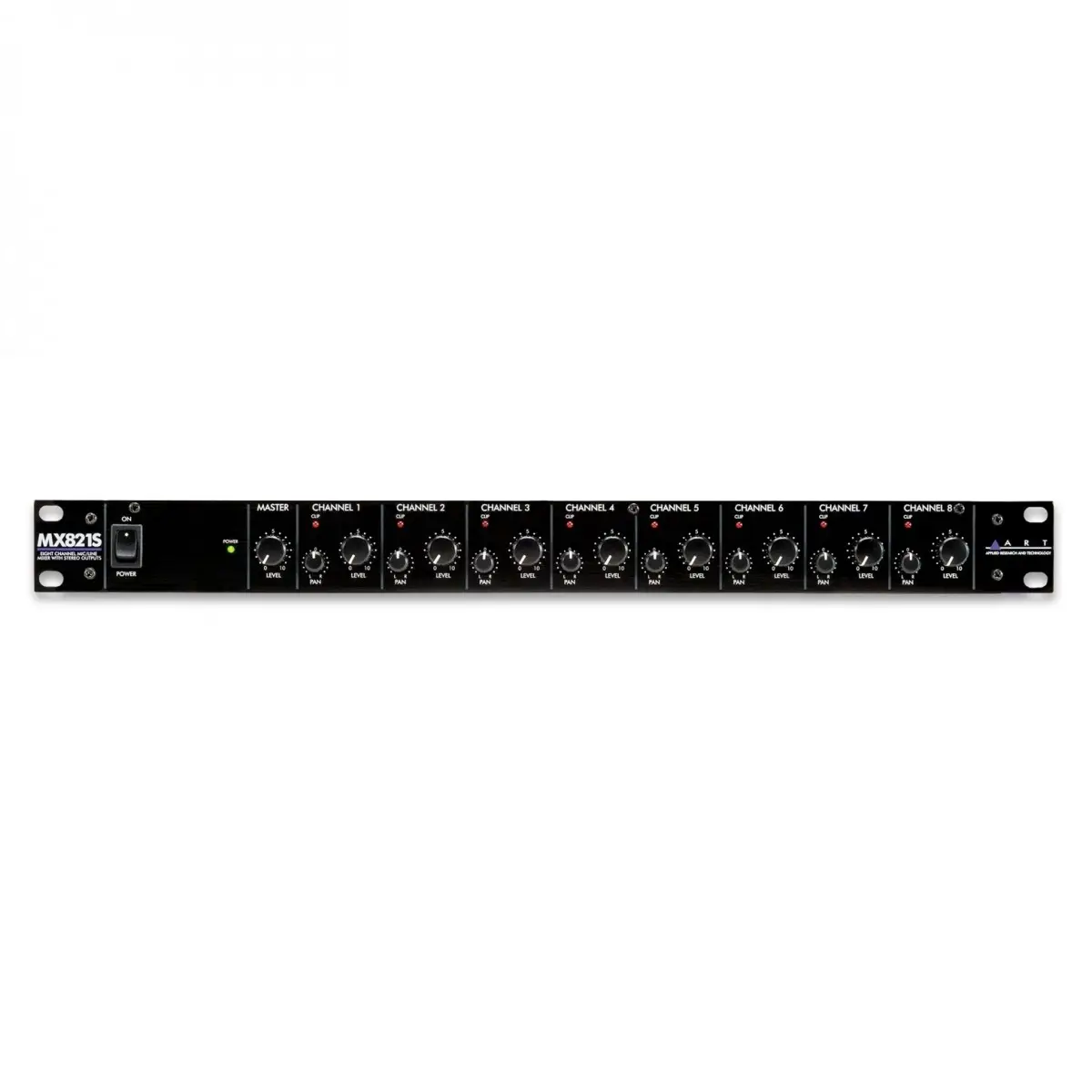 ART MX821S è un versatile mixer montato su rack che combina otto canali di ingresso indipendenti in un’uscita a livello di linea stereo. Ciascun canale di ingresso accetta un ingresso microfonico XLR bilanciato o un segnale di livello di linea TS da 1/4 di pollice sbilanciato e fornisce controlli di livello e pan indipendenti.