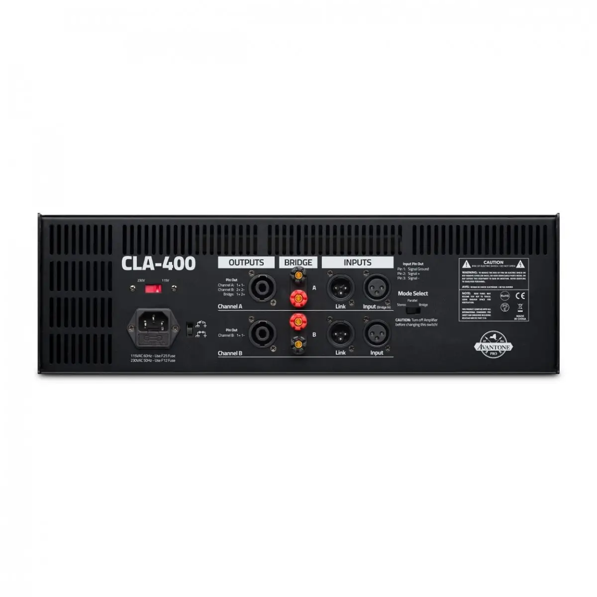 Con il CLA-400, Avantone Pro presenta un amplificatore di potenza da studio costruito interamente con circuiti analogici di Classe A/B. Con un’elevata potenza di uscita fino a 2 x 400 watt, è predestinato a grandi monitor passivi e subwoofer. I migliori componenti giapponesi e un trasformatore toroidale di dimensioni generose garantiscono un’immagine sonora finemente dettagliata con riserve dinamiche sufficienti anche per gli studi di mastering più esigenti. Il CLA-400 può essere utilizzato sia in configurazione stereo che in configurazione mono parallela o a ponte, offrendo la massima flessibilità. Grazie al suo design senza ventole, inoltre, può essere installato senza problemi direttamente nella sala di controllo.