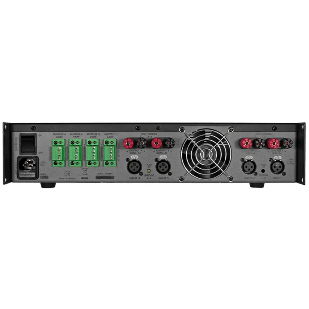 | Potenza continua in uscita (RMS, 1 kHz, 1% THD) | 4 x 240 Watt a 50/70/100 V |