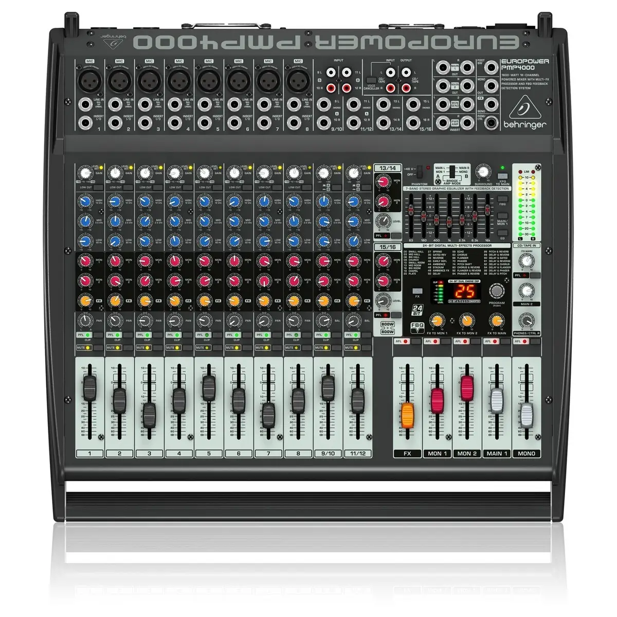 Il Mixer amplificato Behringer PMP4000 Power offre 16 canali e amplificatore 2×800 watt in uno: Con le sue prestazioni ricche e molte caratteristiche come il dispositivo di effetto interno, soppressione del feedback e EQ grafico, è la soluzione ideale all-in-one per bande, sale prove, piccoli luoghi di musica dal vivo o scuole e club con un budget piuttosto limitato.