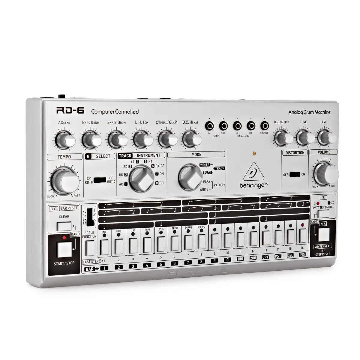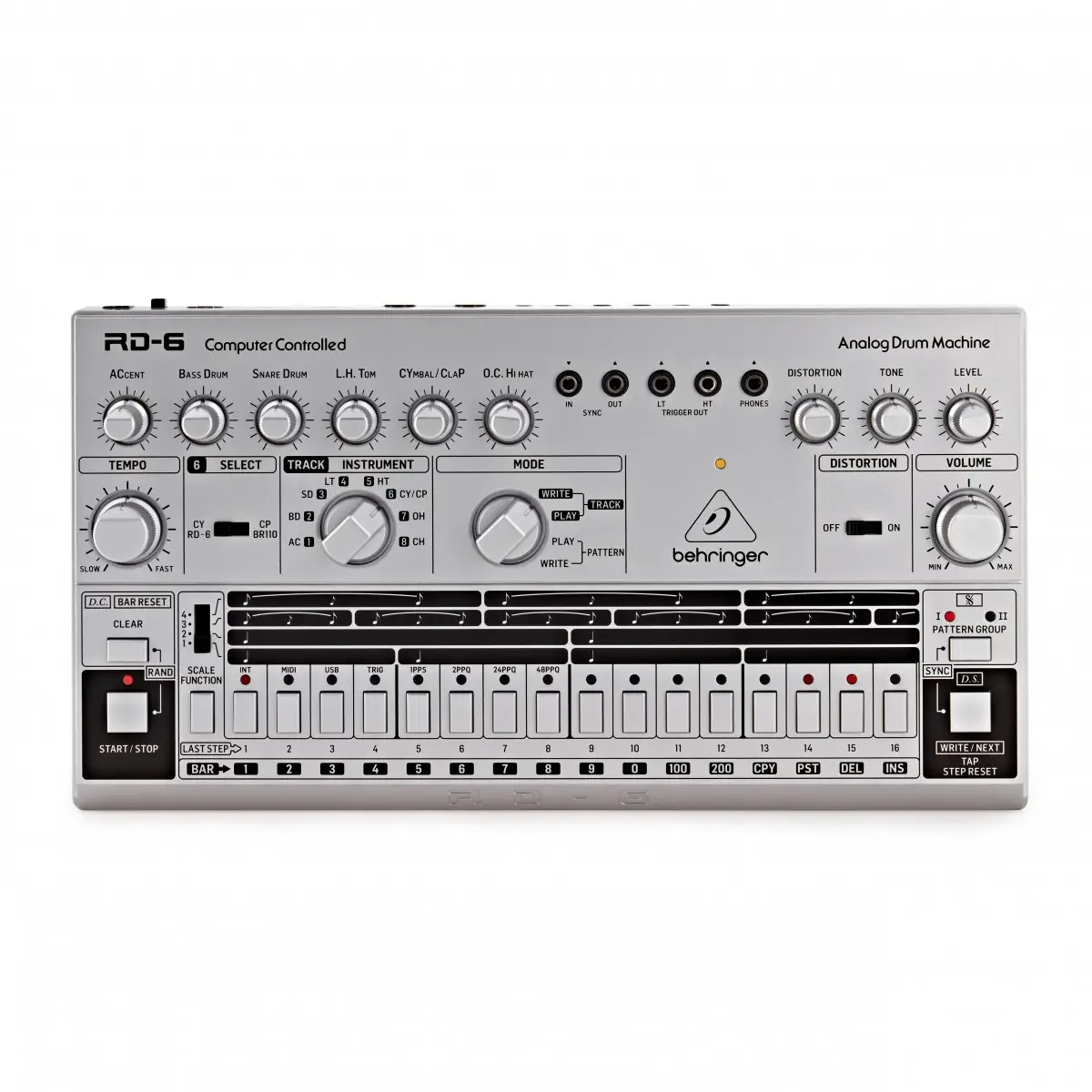 Con la RD-6 SR, Behringer presenta la sua reinterpretazione della famosa Roland TR-606 (1982-1984) e quindi allo stesso tempo la “sorella minore” della RD-8. Era la TR-606 che doveva fornire l’accompagnamento ritmico alla bassline TB-303 nella stessa custodia, e Behringer ha elegantemente riconfezionato questo con la RD-6 SR. Il suono puristico e analogico è adatto allora come oggi, specialmente per le tracce electro e, naturalmente, tutto ciò che ha bisogno di un punch o semplicemente deve completare un’altra drum machine. Otto strumenti e accenti sono programmabili. La grancassa e il rullante hanno i loro propri controlli di volume, i tom, gli hi-hat e i piatti/clap sono impostati a coppie.