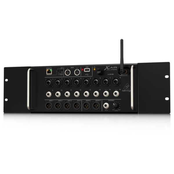Il Behringer X AIR 16 è un mixer digitale a rack con router WLAN integrato per il comando a distanza tramite PC, tablet o smartphone. Tramite iOS, Android, Linux o Windows. La X AIR 16, che si presenta come una scatola compatta, è una “scatola nera” compressa con la più recente tecnologia. I 16 ingressi sono progettati in 8 prese combinate jack XLR per microfono o segnali di linea e le altre 8 prese jack per connessioni di puro segnale di linea. Ad esempio, chitarra, basso, tastiera, lettore MP3, laptop e lettori di linea in generale possono essere collegati a questi. Con i 4 percorsi AUX bilanciati è possibile impostare il proprio suono di monitor per 4 musicisti e con l’uscita cuffie si sarà anche in grado di fornire il batterista con il suono che si desidera separatamente.