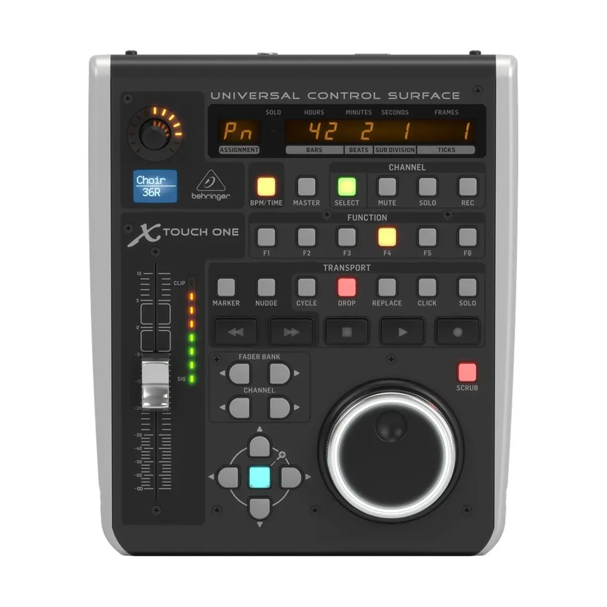 L’X-TOUCH ONE di Behringer è un controller DAW flessibile che è adatto non solo per gli studi domestici, ma anche per le configurazioni dal vivo. Offre tutto ciò che il cuore desidera e consente quindi un flusso di lavoro ottimale: fader motorizzati sensibili al tocco e una dinamica striscia di scarabocchi LCD, encoder rotativo, 34 pulsanti retroilluminati, contatori a LED a 8 segmenti, una grande ruota jog/shuttle con funzioni di trasporto e altro ancora. Per consentire l’integrazione, vengono utilizzati i protocolli più comunemente usati nell’industria, cioè tutto funziona senza problemi in combinazione con DAW compatibili, in modo che l’attenzione sia focalizzata su ciò che conta… la musica!