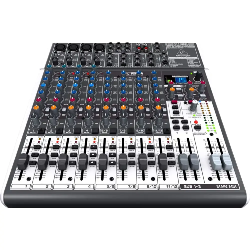 - Uscite mix principale con 1/4 ‘ jack & connettori XLR placcati in oro, controllo separato di room, Cuffie & stereo uscite rec