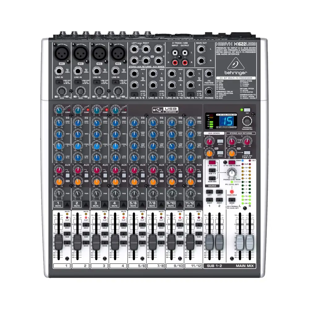 - 2 aux send per canale: 1 pre post fader commutabile per applicazioni di monitoring/FX, 1 post fader