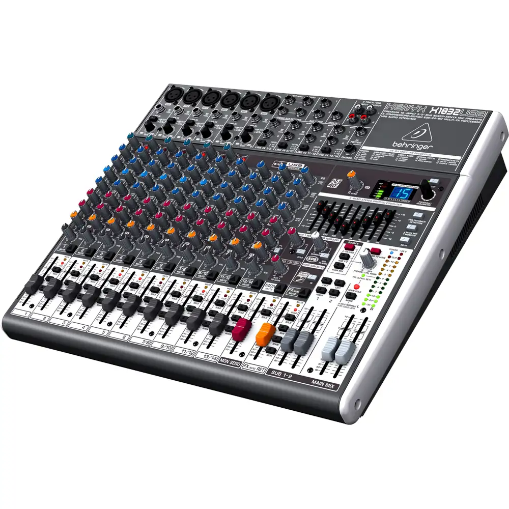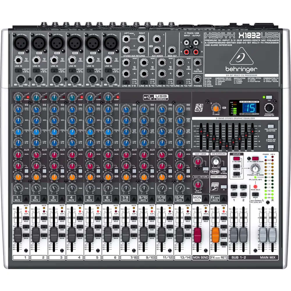 Mixer Xenyx X1832USB Dotato di preamplificatori microfonici premium e di ampie funzioni solitamente riservate alle console più costose, lo Xenyx Serie Q-Series USB Mixer di nuova generazione è il partner perfetto per le esibizioni dal vivo o le registrazioni professionali in sala prove o in studio. L’interfaccia USB/Audio integrata, il compressore monocanale “One knob” e la sezione effetti di Klark Teknik (solo per la serie Xenyx QX) trasformano il computer in un potente studio di registrazione.