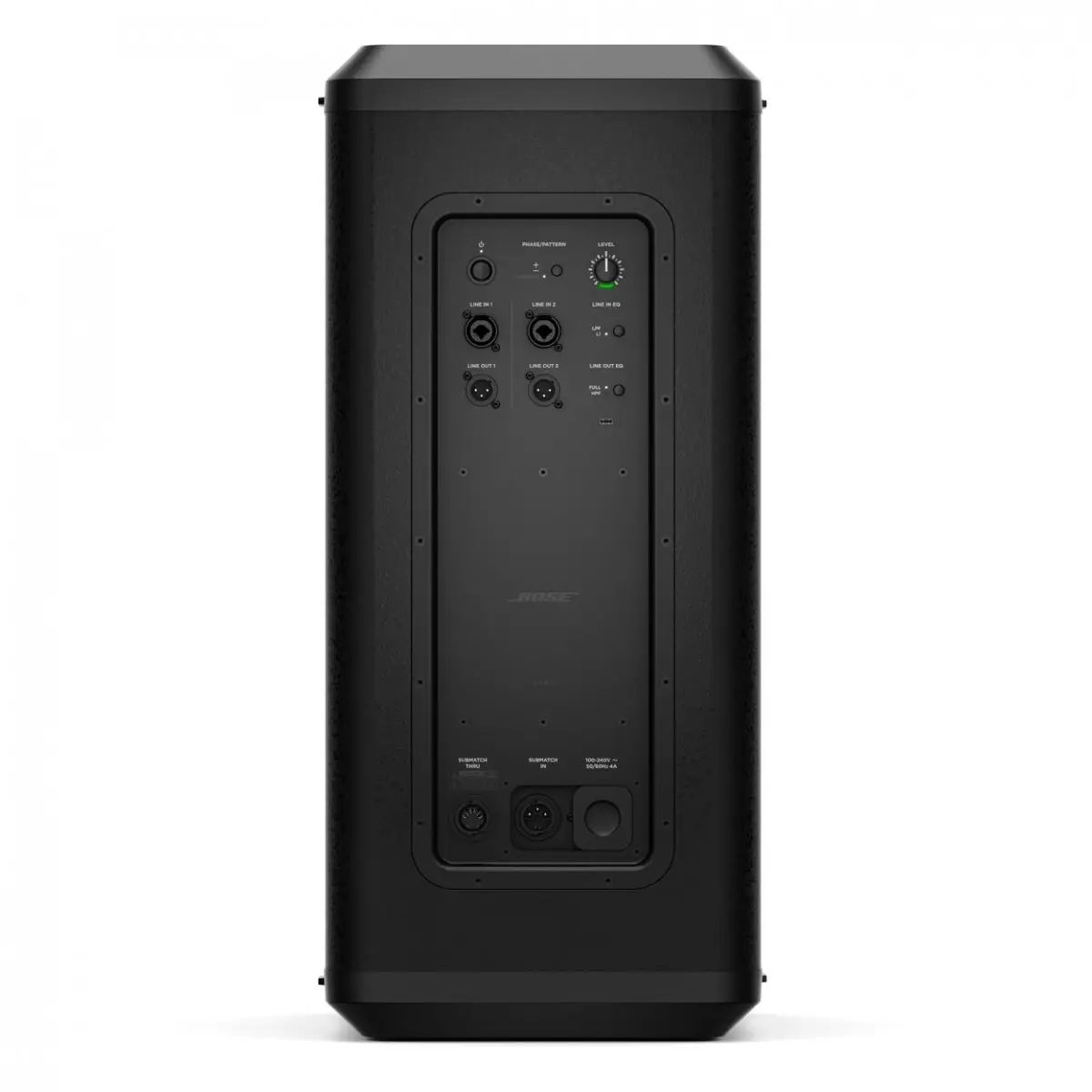 - Accoppiamento senza soluzione di continuità con il Bose L1 Pro32 Portable Line Array tramite il connettore proprietario SubMatch, che gestisce sia l’alimentazione che la trasmissione audio