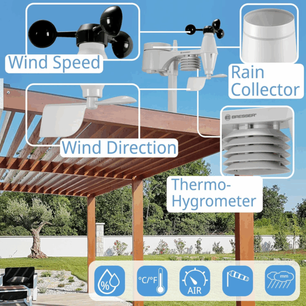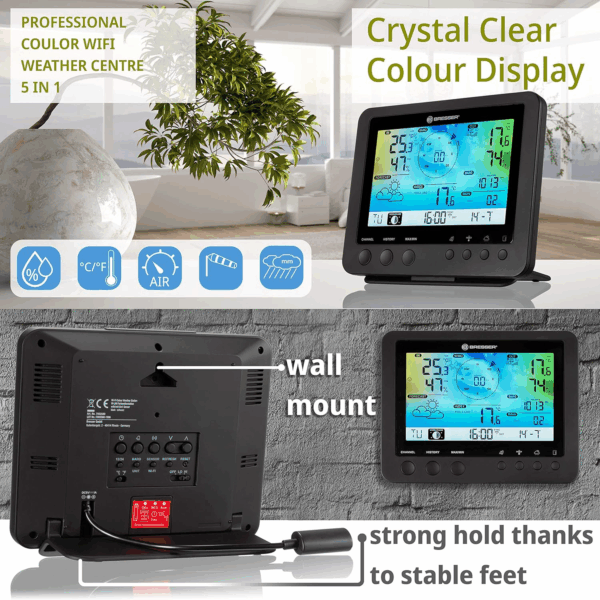 La stazione meteo a colori BRESSER Wi-Fi 5 in 1 offre informazioni dettagliate sul meteo con una tecnologia avanzata e un design compatto.