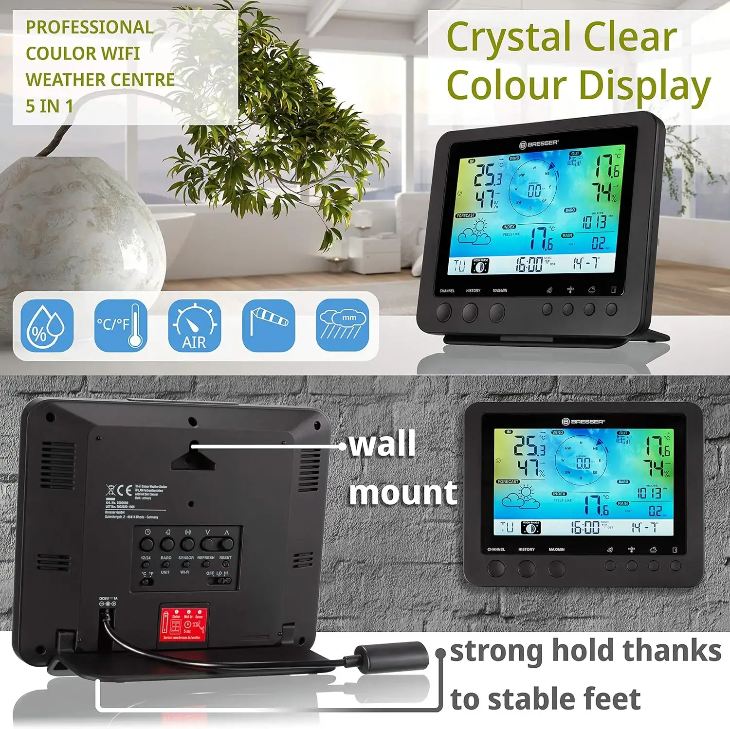 BRESSER Stazione Meteo a Colori Wi-Fi 5 in 1, Bianco