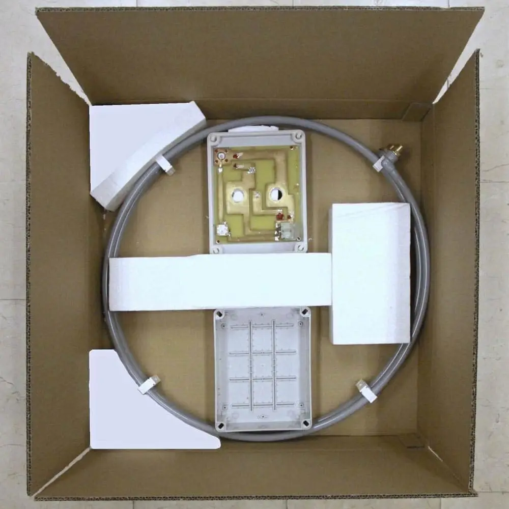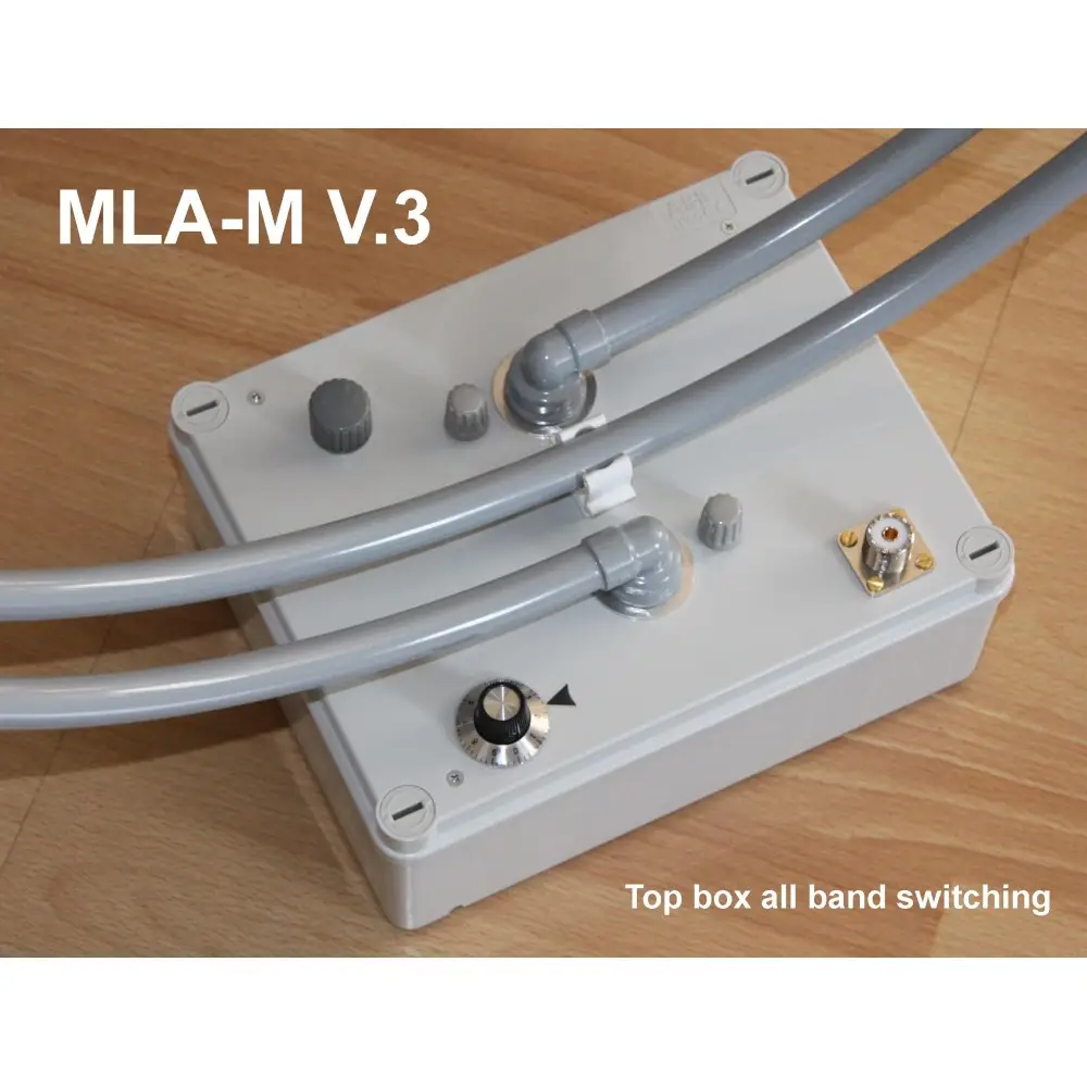 La MLA-M è un’antenna magnetica portatile per operazioni in QRP. Questa robusta antenna ha un diametro di 60 cm e può gestire fino a 10 watt. La scatola contiene il circuito di sintonia.