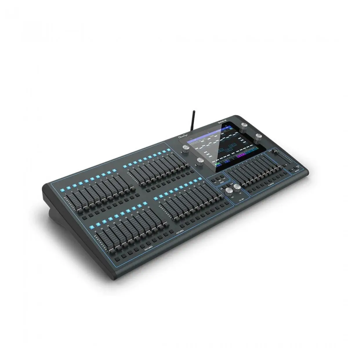 - Dispone di 20 fader multifunzione e di tre diverse modalità: Fixture, Group e Cue.