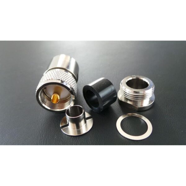 Connettore MESSI & PAOLONI 'UHF' (PL) per cavi da 10,3mm, progettato per garantire una protezione ottimale contro l'umidità.