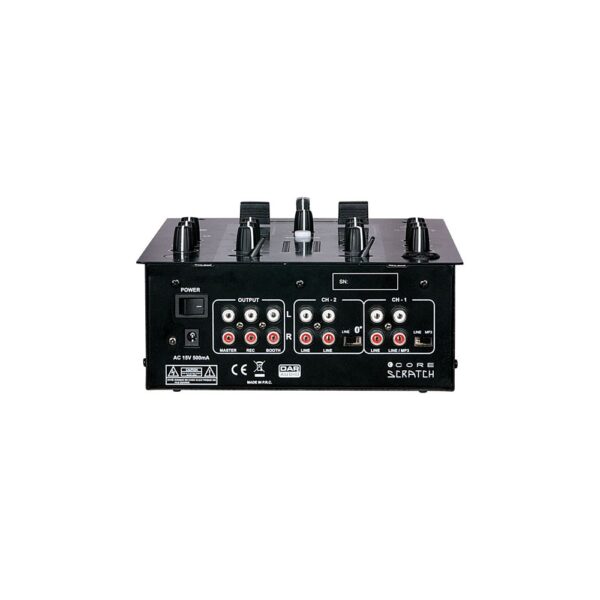 Core Scratch è il fratello minore del Core MIX-2 USB. Dispone di 4 ingressi di linea, di un ingresso microfonico e di un modulo di riproduzione Bluetooth. Il modulo di riproduzione Bluetooth consente di mixare i lettori connessi con dispositivi wireless quali ad esempio smartphone o tablet. Dispone inoltre di un ingresso che può essere alternato fra linea e livello MP3. Il livello MP3 regola la sensibilità dell’ingresso fino al livello corretto per lettori MP3, smartphone o tablet. Ora sarà possibile avviare la riproduzione dei dispositivi MP3 direttamente senza perdita di segnale. Il Core Scratch ha dei cursori eleganti, controllo dei toni +12/-26dB ed è stato realizzato con componenti di qualità per ottenere un livello di prestazioni ottimale.