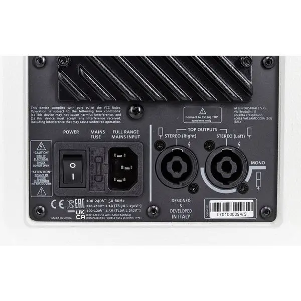 La confezione include un Distanza Polo, SottoCustodia, Custodia Tops e cavi SpeakON.