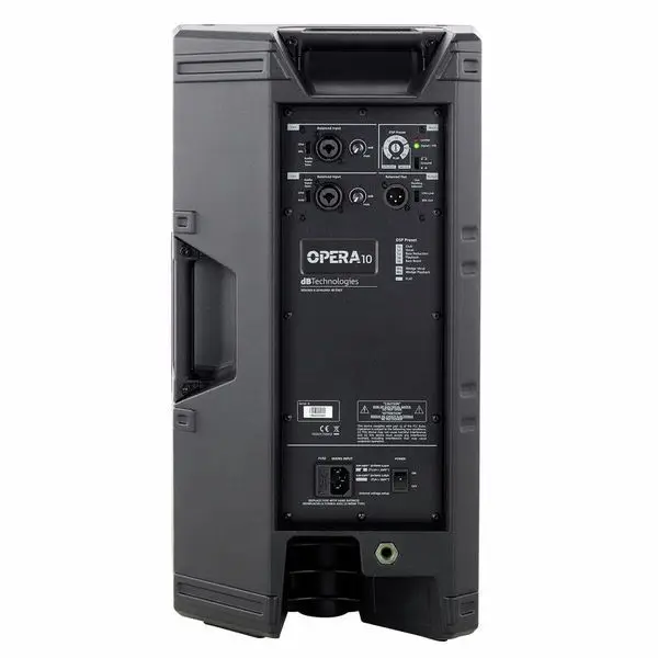 Uno sguardo al retro rivela quali caratteristiche sono disponibili. C’è la sezione Input, composta da 2 connettori combo (XLR/jack), ognuno con il proprio controllo del volume e l’interruttore di linea/microfono. D’altra parte, un interruttore di uscita XLR Velt Link/Mix Out. Interessante e soprattutto con questa serie Opera è l’area principale, con la quale è possibile scegliere un suono adatto a tutte le situazioni più comuni. La manopola è utile per passare da un preset all’altro, ad esempio “Club”, “Vocal” e “Playback”, in modo da aumentare la quantità di bassi o creare trasparenza nella gamma alta. Non dimenticare le modalità “a cuneo”, che dovrebbero essere utilizzate quando si installa l’altoparlante.