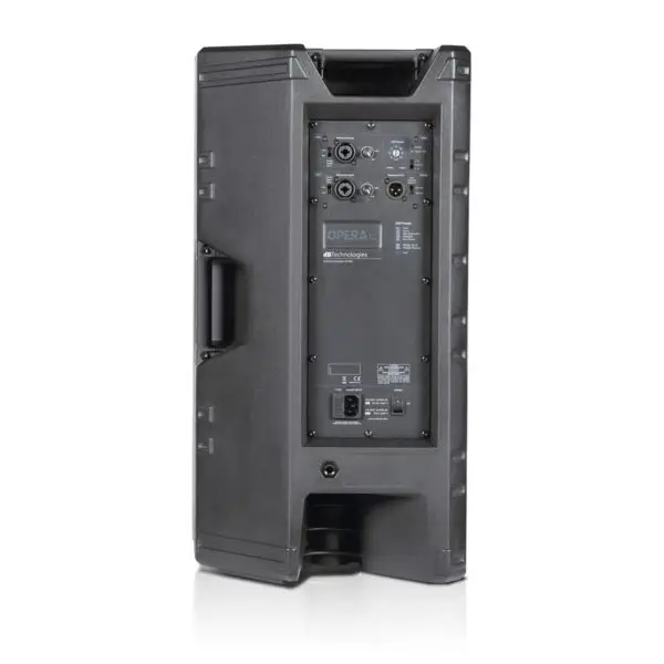 Uno sguardo al retro rivela quali caratteristiche sono disponibili. C’è la sezione Input, composta da 2 connettori combo (XLR/jack), ognuno con il proprio controllo del volume e l’interruttore di linea/microfono. D’altra parte, un interruttore di uscita XLR Velt Link/Mix Out. Interessante e soprattutto con questa serie Opera è l’area principale, con la quale è possibile scegliere un suono adatto a tutte le situazioni più comuni. La manopola è utile per passare da un preset all’altro, ad esempio “Club”, “Vocal” e “Playback”, in modo da aumentare la quantità di bassi o creare trasparenza nella gamma alta. Non dimenticare le modalità “a cuneo”, che dovrebbero essere utilizzate quando si installa l’altoparlante.
