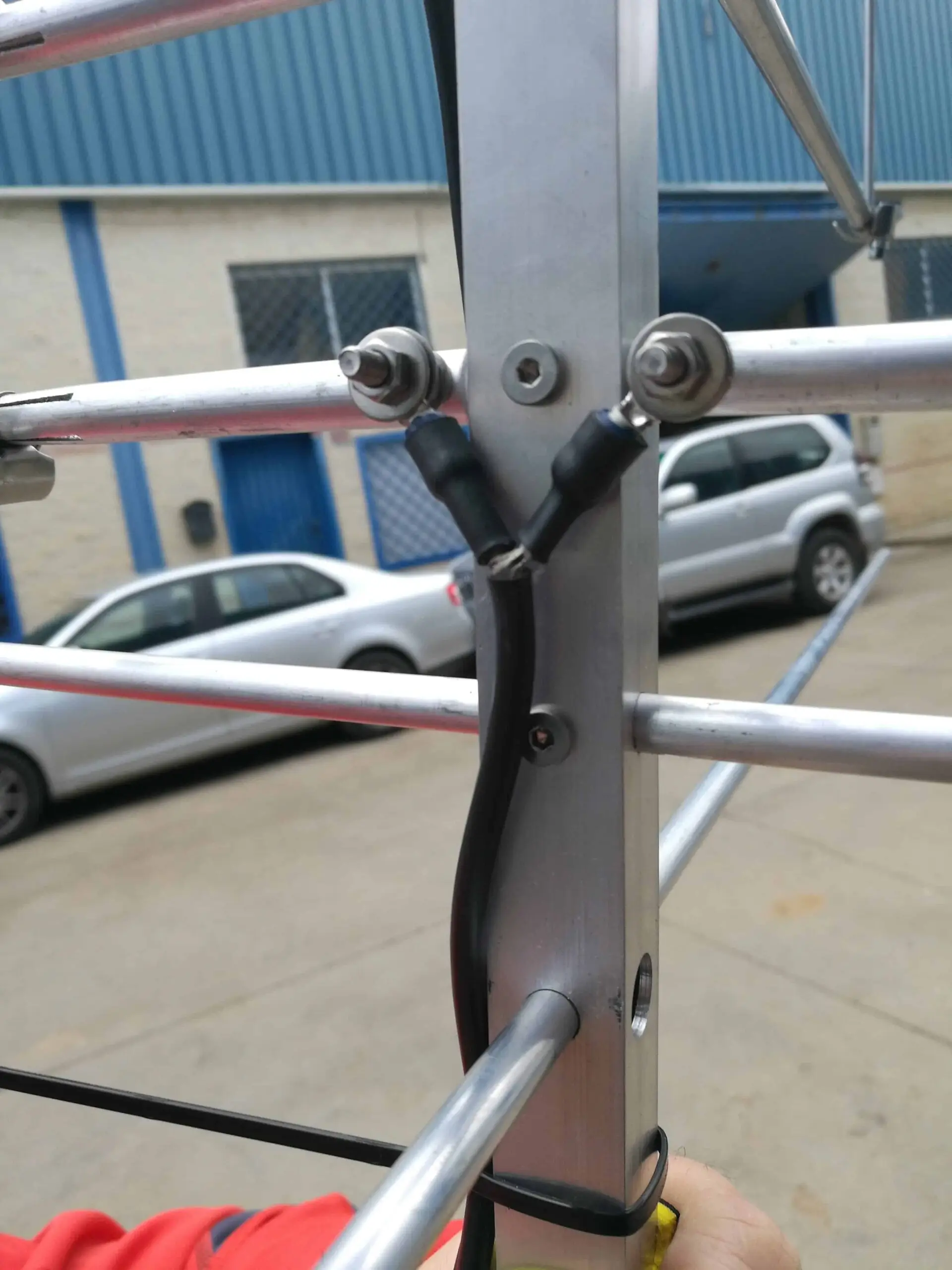 Antenna direzionale Yagi per bande VHF/UHF con caratteristiche tecniche avanzate.