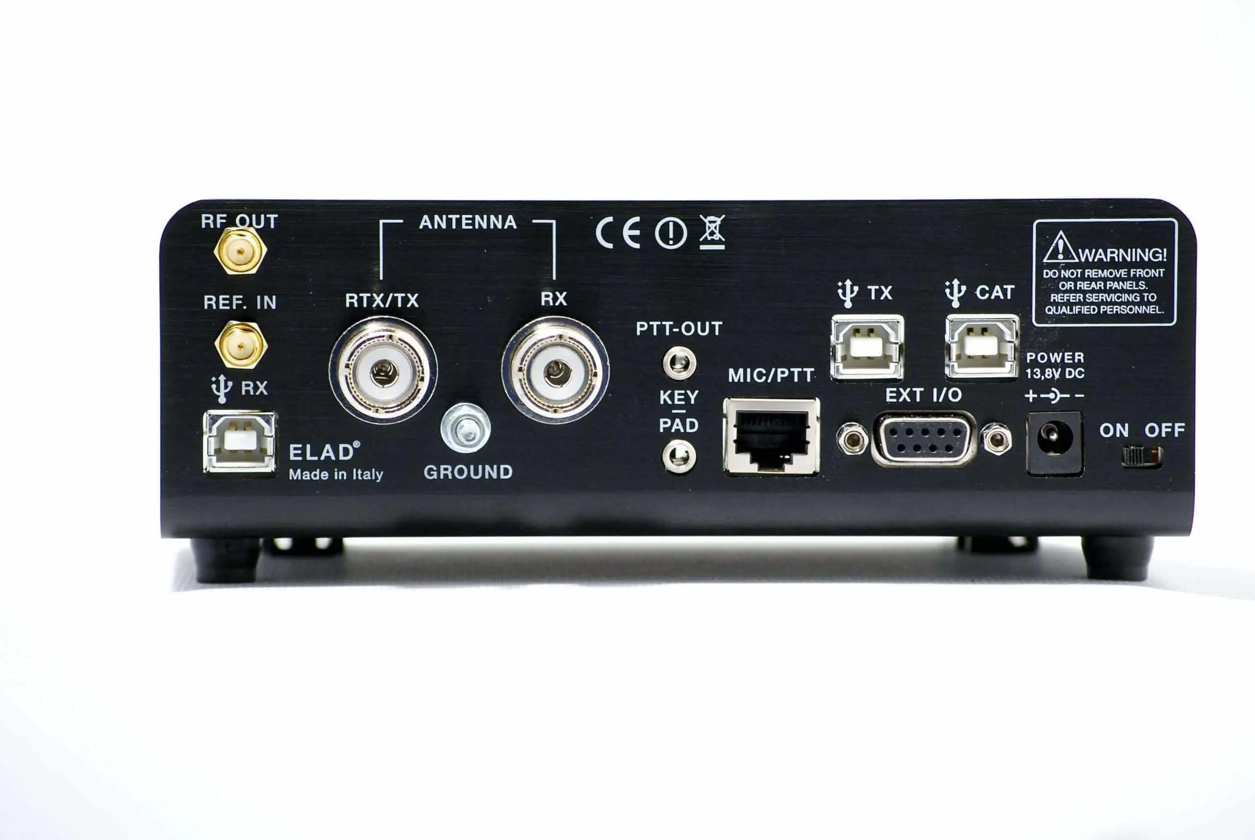 Il campo di ricezione si estende da 10 kHz a 54 MHz. Le due prese d’antenna commutabili possono essere impostate tramite il menu, in modo da utilizzare sempre l’antenna corretta e il modulo di filtraggio corrispondente a seconda della frequenza. Un TCXO assicura una buona stabilità di frequenza, ed il rumore della banda laterale dell’oscillatore è eccezionalmente basso da -130 a -136 dBc, assicurando così un’ottima sensibilità ed un basso rumore di fondo. In alternativa, è disponibile un ingresso per un riferimento di clock esterno a 10 MHz.