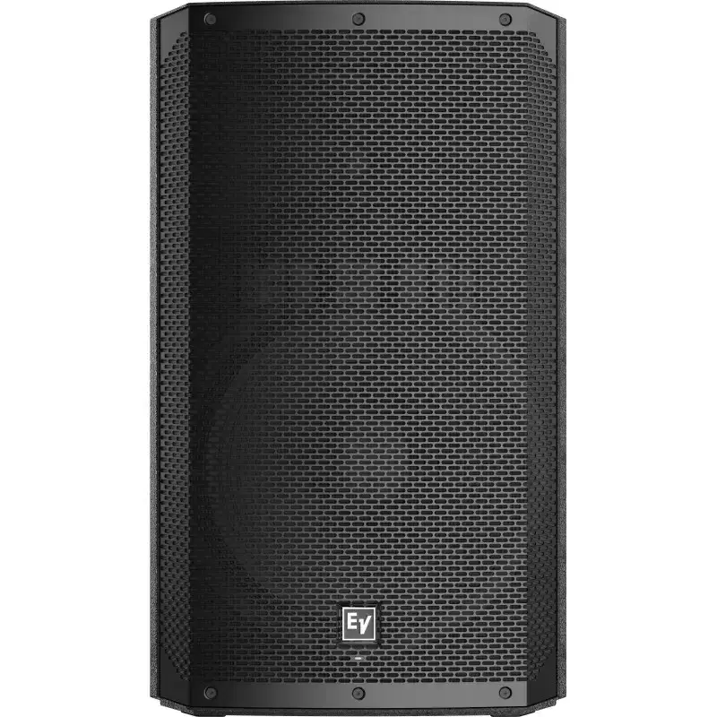 Sistema a 2 vie autoalimentato full range. Cassa asimmetrica di forma trapezoidale costruita con stampi in polipropilene iniettato, rifinita in colore nero. Permette di controllare e monitorare fino a 6 sistemi contemporaneamente tramite l’app QuickSmart Mobile per iOS e Android, ricevendo notifiche immediate in condizioni operative critiche. Include due (2) maniglie per il trasporto, supporto per treppiede e tre (3) punti di ancoraggio M10. Include un modulo amplificatore di classe D da 1.200 W con DSP QuickSmart, display LCD ed encoder associato, con preset per modalità di applicazione e posizione, 5 preset programmabili dall’utente, controllo dei toni e selezione del filtro passa-alto per l’uso con SUB. Dispone di 2 ingressi MIC/LINE (XLR-Jack¼’ Combo), 1 ingresso AUX (Stereo RCA), 1 uscita con somma di tutti gli ingressi (XLR). LF: 1 altoparlante con cono da 15′ (EVS-15M). HF: 1 driver a diaframma in titanio da 1′ (DH-1C). Risposta -10dB: 48Hz – 19kHz. SPL massimo: 132 dB. Angolo di copertura: H 90° x V 60°. Consumo di energia: 100 – 240 V, 50 – 60 Hz, 1,8 A.