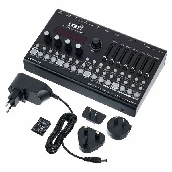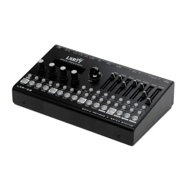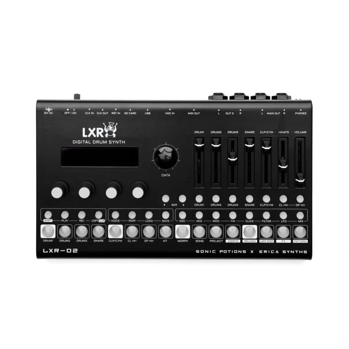 L’LXR-02 offre sei voci di batteria, oltre 30 parametri regolabili per voce, un potente sound design engine con effetti integrati e un sequencer a 64 passi.