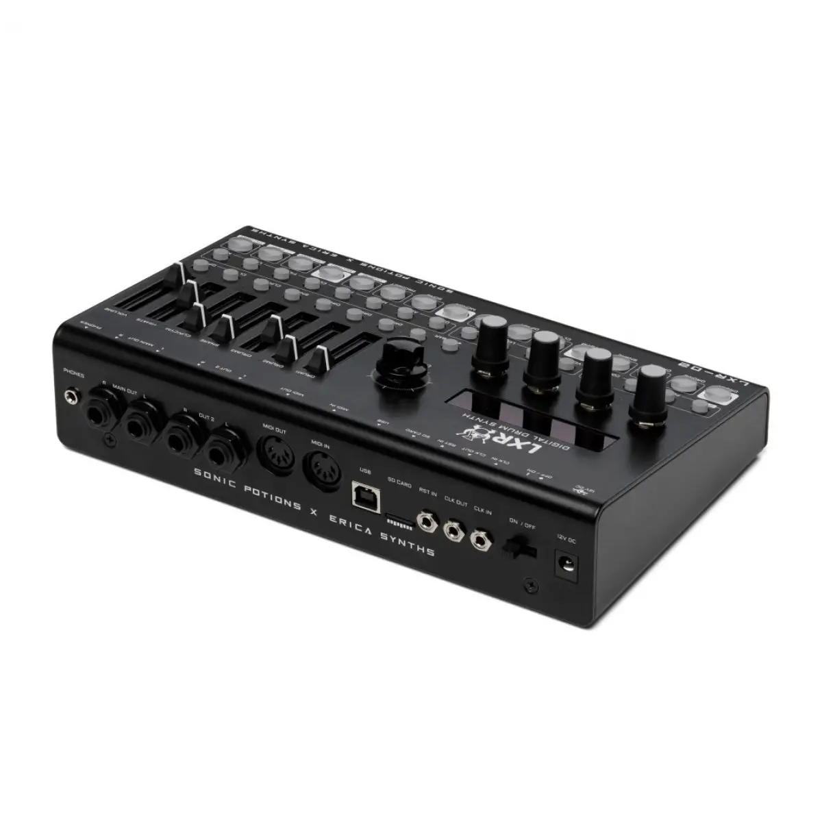 L’LXR-02 dispone di ingressi e uscite MIDI, permettendo un’integrazione semplice con moduli e sintetizzatori esistenti.