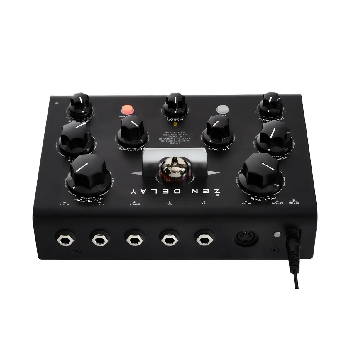 Erica Synths Zen Delay è un effetto Stereo Delay sviluppato in collaborazione con l’etichetta londinese Ninja Tunes. La caratteristica letteralmente eccezionale di questo dispositivo compatto è la valvola protetto da una staffa che fornisce il suono di distorsione.