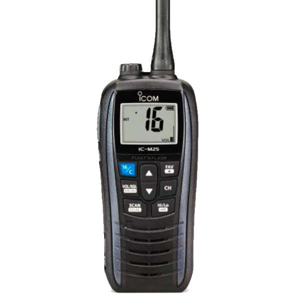 L'Icom IC-M25 è un ricetrasmettitore VHF portatile, galleggiante e leggero, progettato per l'utilizzo in ambiente marino.