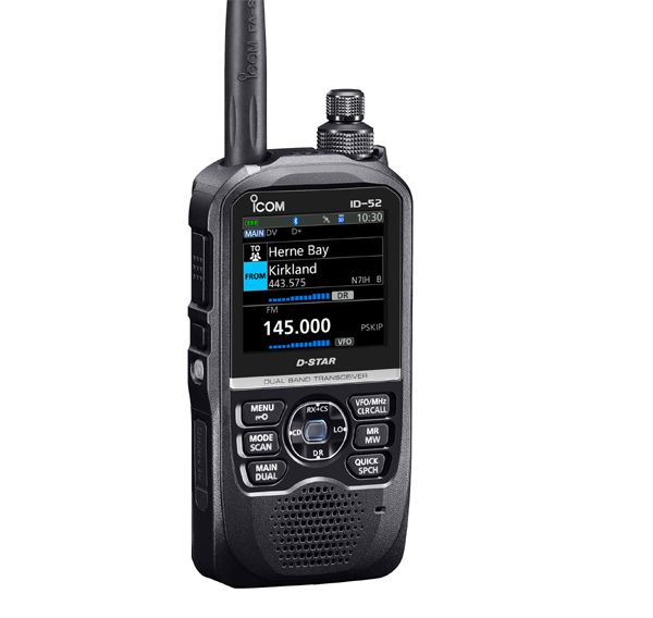 Icom ID 52E è un ricetrasmettitore portatile dual band VHF/UHF dotato di funzionalità avanzate come D-Star, Bluetooth e GPS integrato, ideale per appassionati e professionisti della comunicazione radio.