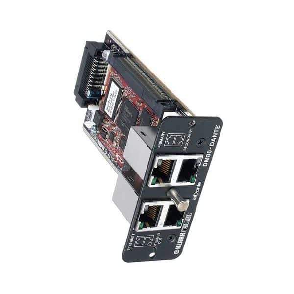 DM80 DANTE è una scheda di espansione dell’interfaccia audio multicanale che consente al processore audio digitale Klark Teknik DM8000 di connettersi a dispositivi esterni tramite il protocollo multimediale digitale ad alte prestazioni Dante per fornire audio su una rete IP Ethernet standard.