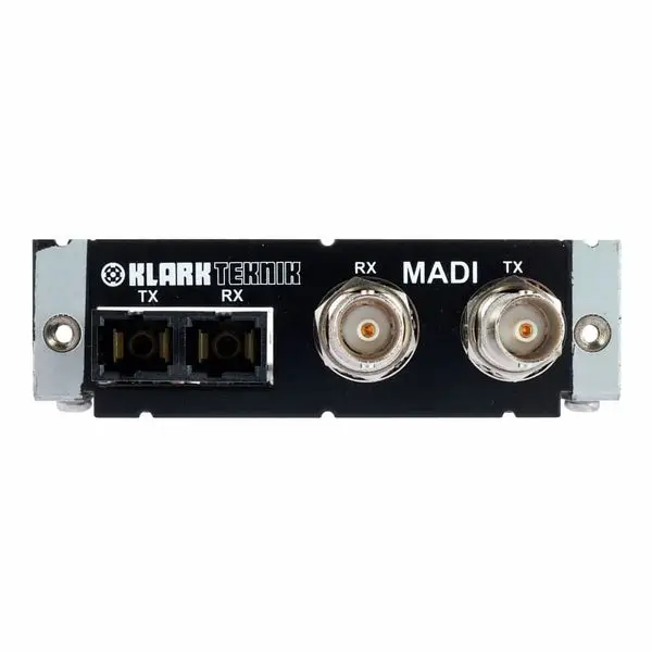 Il KT MADI fornisce compatibilità MADI per i bridge di rete Klark Teknik DN9650 e DN9652 e dispone di fino a 64 o 32 canali bidirezionali rispettivamente a 48 kHz o 96 kHz. KT-MADI offre collegamenti punto-punto ad alte prestazioni sia su fibra ottica standard del settore che su connessioni in rame coassiale ed è ideale per interfacciarsi con apparecchiature di registrazione e riproduzione di terze parti.