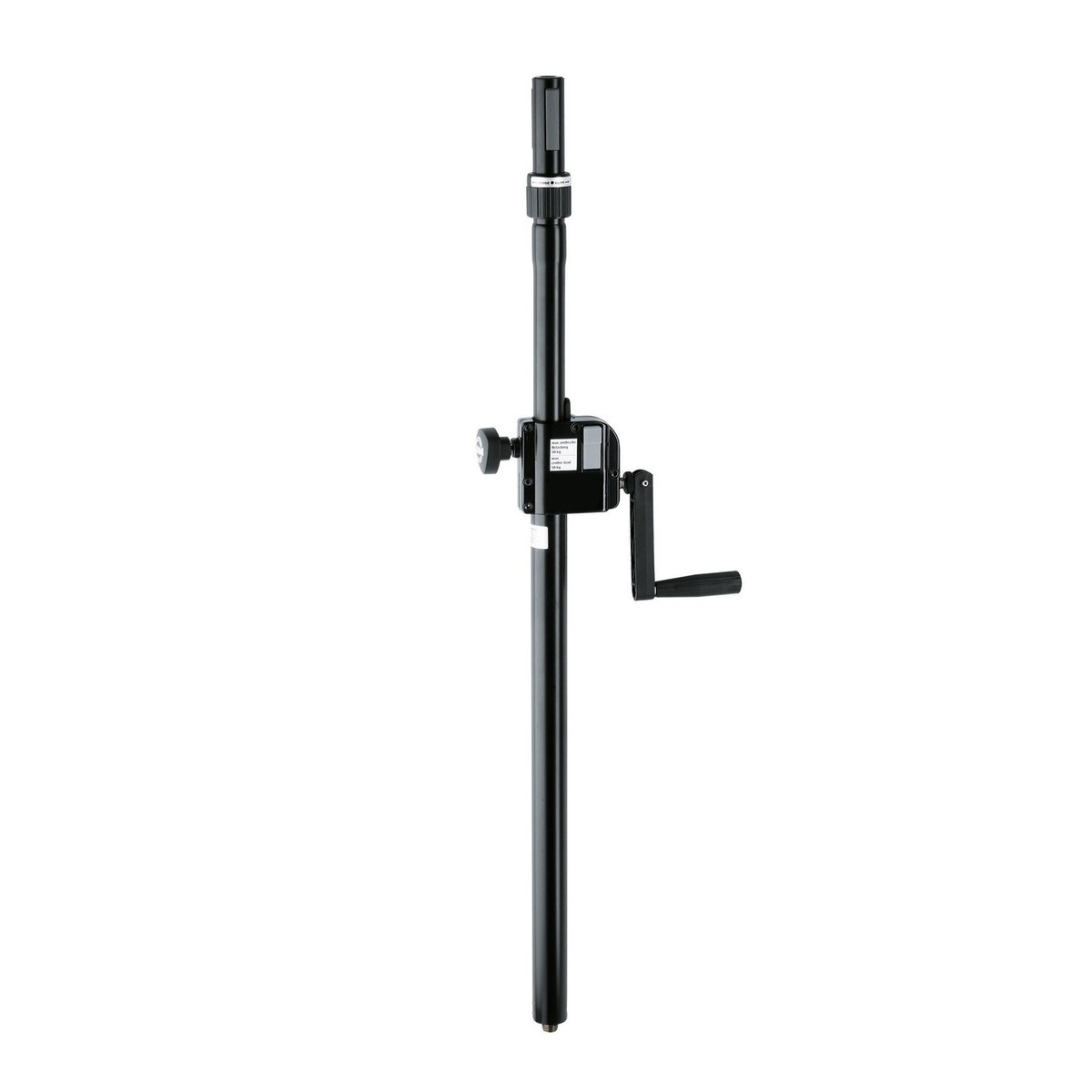 Gli altoparlanti possono essere fissati saldamente e in modo sicuro con il sistema brevettato »Ring Lock«. Una comoda manovella consente di regolare l’altezza anche degli altoparlanti più pesanti in modo semplice e sicuro. Un bullone filettato M20 e il mandrino ad espansione brevettato garantiscono un sistema professionale ed eccezionalmente sicuro.