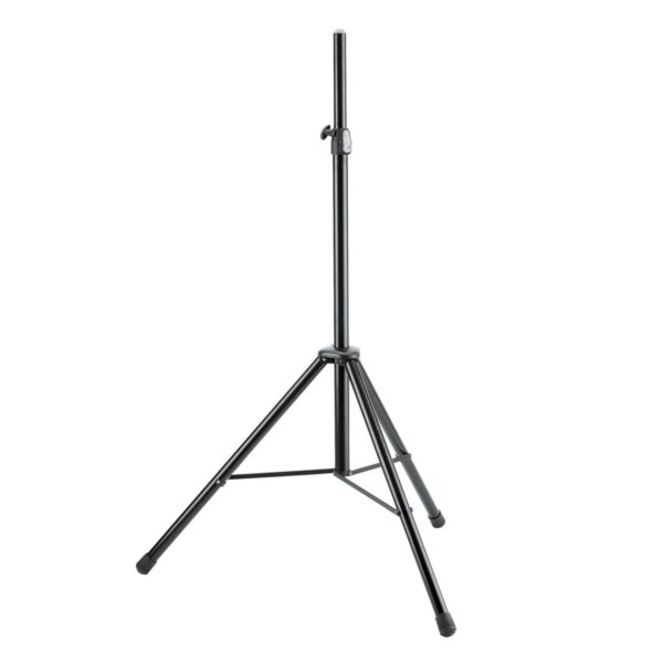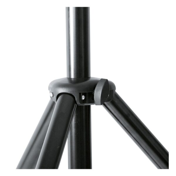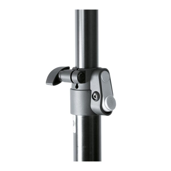 Il supporto per diffusori standard realizzato in alluminio è stato notevolmente migliorato. Le nuove gambe con un diametro del tubo di 35 mm e i grandi tappi terminali fissi garantiscono stabilità e sicurezza. I fori realizzati al laser e le rondelle della sella in plastica robuste e durevoli migliorano il coefficiente di attrito tra le gambe e le bretelle e prevengono i graffi della finitura. Un morsetto compatto con un sistema a pulsante brevettato consente una regolazione dell’altezza del supporto intuitiva. La vite di bloccaggio fornisce ulteriore stabilità e un supporto per altoparlante privo di vibrazioni. Altre caratteristiche includono una protezione estraibile per il tubo di prolunga e un componente anti-shock integrato.