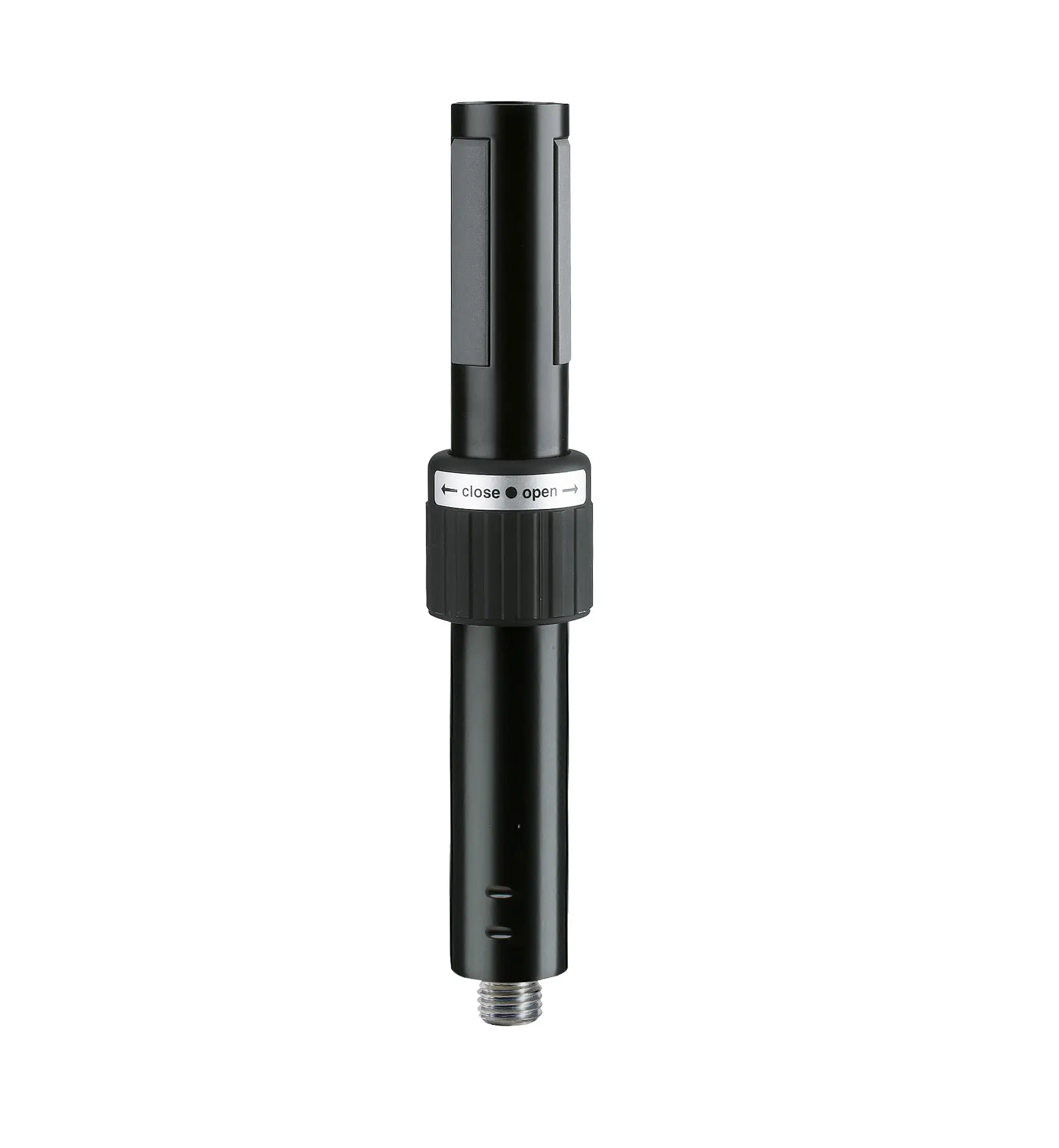 Le ganasce di espansione in plastica garantiscono un collegamento a bassa risonanza tra altoparlante e tubo. Maneggevolezza grazie all’anello di bloccaggio. Fondo con perno filettato M20 da avvitare alla piastra di montaggio 24116.