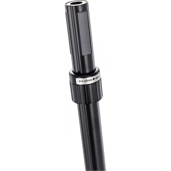 Un eccezionale supporto per altoparlanti in alluminio con un esclusivo sistema brevettato di mandrino espandibile che fornisce una vestibilità stabile, aderente e salda per gli altoparlanti. Le stecche mobili in plastica garantiscono un collegamento esente da vibrazioni tra l’asta e l’altoparlante. Il collegamento dell’altoparlante è semplice e viene effettuato utilizzando il pratico blocco ad anello, che viene semplicemente posizionato in posizione e avvitato. L’altezza viene regolata tramite un bullone a molla e una vite di bloccaggio facili da usare. I montanti a doppio piede, le staffe di bloccaggio in pressofusione di zinco e i cappucci terminali di grandi dimensioni garantiscono il massimo grado di stabilità del supporto.