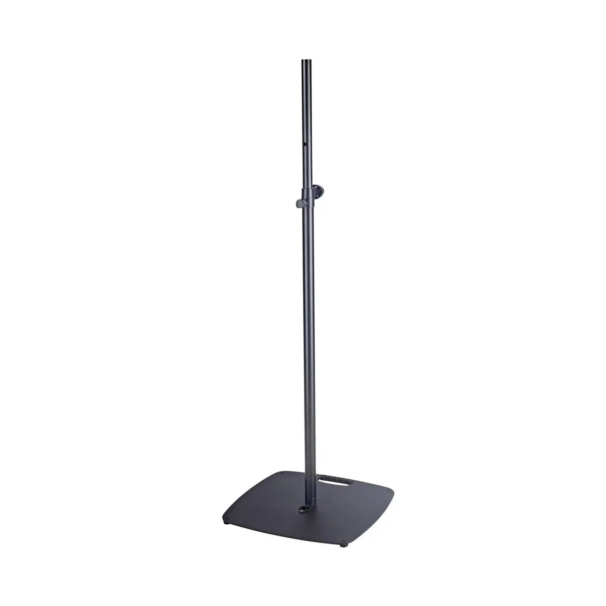 Supporto attraente per luci e cabinet per altoparlanti più piccoli. Grazie alla piastra in acciaio pesante e piatta, il supporto è particolarmente adatto per l’uso in spazi limitati. L’altezza è fissata con un gancio di sicurezza e assicurata da una vite di bloccaggio per una vestibilità salda e senza vibrazioni. Il design sottile del morsetto consente un trasporto salvaspazio e garantisce un aspetto elegante. L’altezza utile è compresa tra 1.400 e 2.400 mm e si regola in 5 step da 200 mm. La boccola filettata M10 integrata consente il fissaggio di un traliccio o il montaggio diretto delle luci. La capacità di carico massima a piena estensione è di 30 kg.