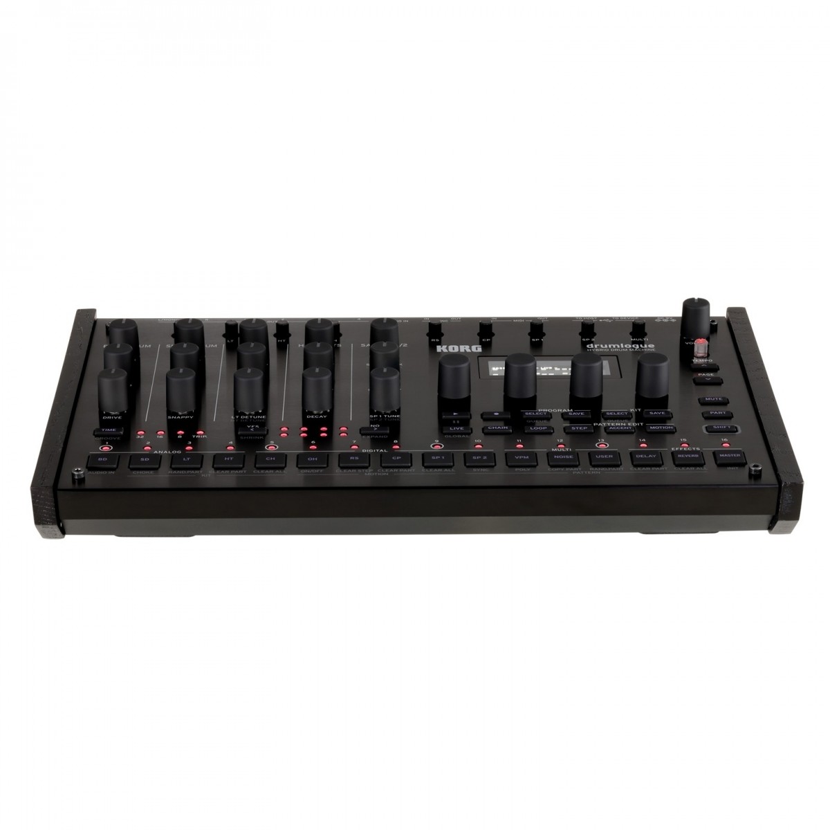 - Quattro potenti voci di batteria analogiche (kick, Rullante, hi tom, lo tom)