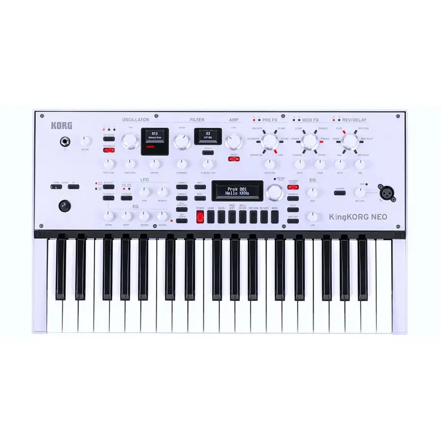 Potente sintetizzatore digitale, riedizione del popolare KingKORG, dalle dimensioni compatte con tastiera standard 37 tasti, e un performante motore sonoro proprietario in grado di produrre accattivanti sonorità Virtual Analog, Digitali DWGS, e PCM. Le ampie possibilità di sintesi sono supportate anche da un versatile filtro multimodo e da una articolata sezione DSP con 3 Slot effetti. KingKORG NEO include inoltre un Vocoder con microfono dedicato in dotazione, che genera le sonorità più suggestive di questo dispositivo. E’ dotato infine di un esteso pannello comandi Analog Style con accesso diretto al controllo dei parametri, ideale per l’uso Live.