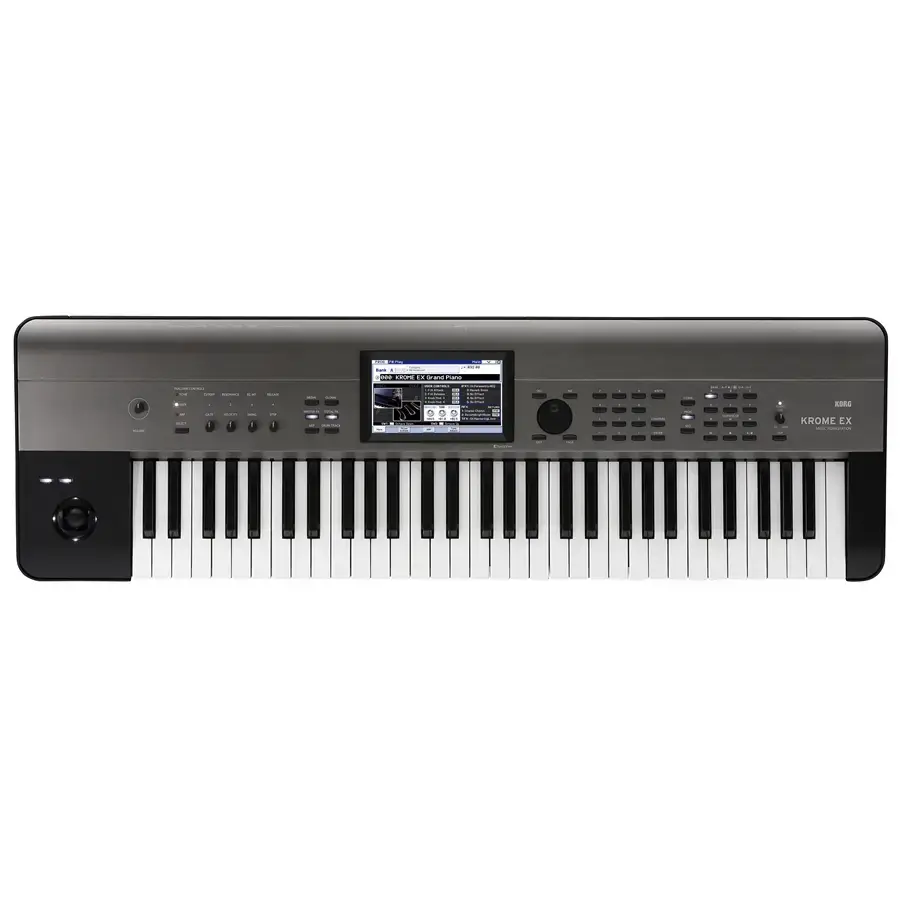 KROME-61 EX Synth Workstation tastiera 61 tasti semipesati, avanzato motore sonoro con un’ampia libreria PCM 120 voci di polifonia ed estese possibilità di sintesi. Oltre 1.500 Program, più di 700 Combination: fino a 16 Program assegnabili Split/Layer, 80 DrumKit. 193 effetti Stereo : 5 insert FX, 2 Master FX, 1 Total FX. Funzioni interattive: Arpeggiatore polifonico, DrumTrack con vasta libreria di Pattern, Sequencer MIDi 16 Tracce, 128 Song, oltre 200.000 eventi, Full Editing. L’Interfaccia utente è basata su un Display grafico Touch 7’’ TFT LCD a colori, integrato da controlli fisici.
