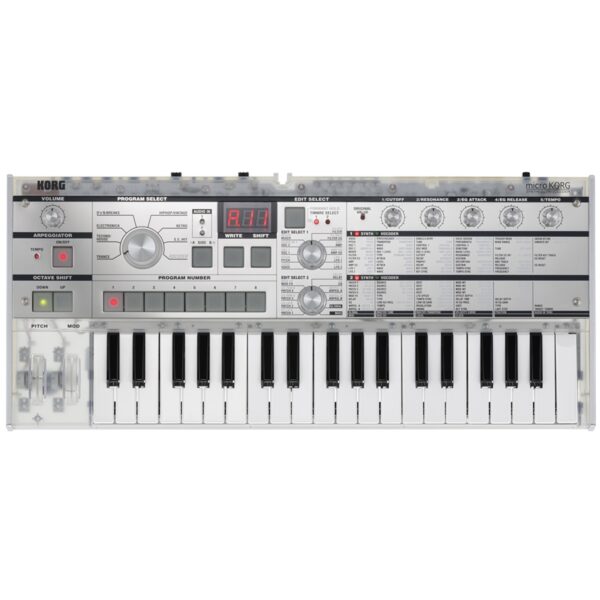 L’iconico synth compatto dall’innovativa architettura con motore sonoro a modellazione fisica analogica, effetti, arpeggiatore e vocoder incorporato, viene riproposto nell’anniversario dei 20 anni dalla presentazione, nella versione microKORG Crystal, con un nuovo e originale look con scocca e comandi semitrasparenti.