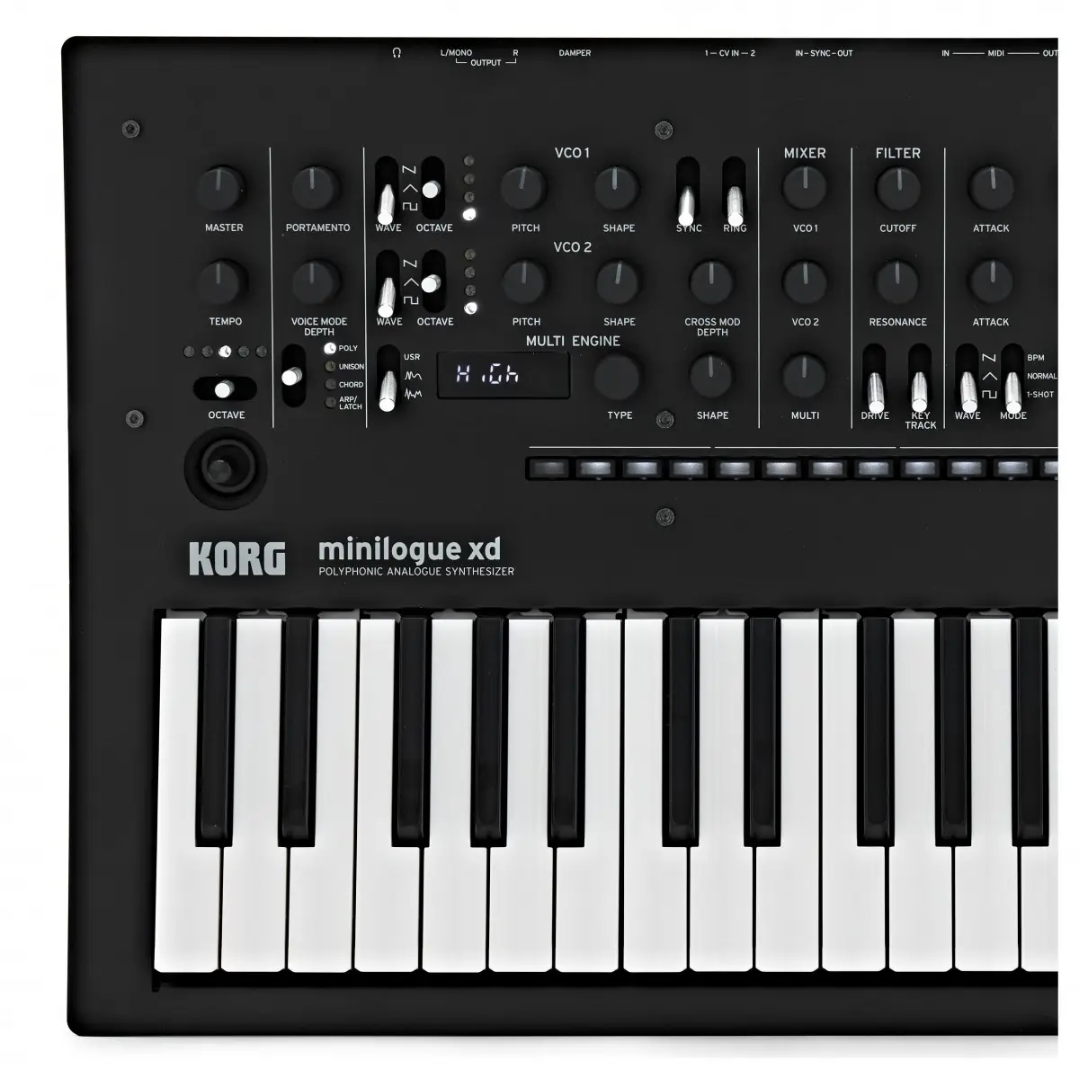 KORG minilogue XD è un synth polifonico analogico programmabile 4 voci, pannello analog style con accesso diretto ai parametri. Ha una articolata struttura che unisce le timbriche calde e Fat della sintesi analogica tradizionale a quelle generate dal Multi Engine e dagli effetti digitali programmabili, il Display OLED con Oscilloscopio aiuta la programmazione, mentre il Sequencer: Realtime, Step, Motion, è un avanzato tool creativo.