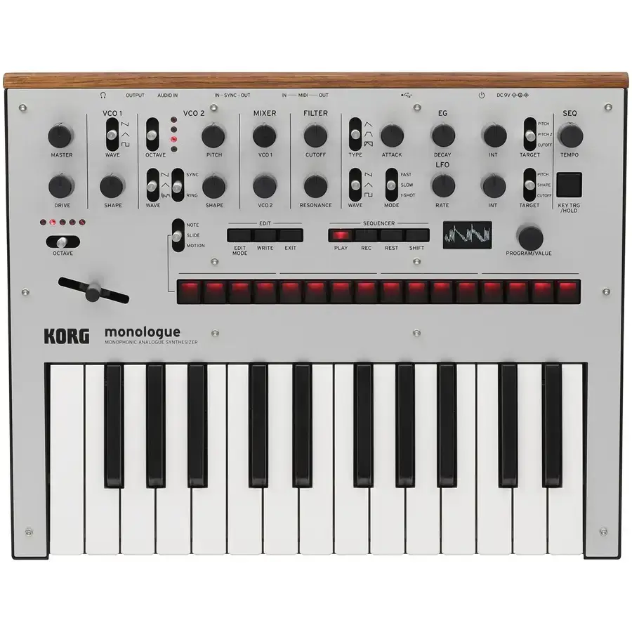 Il monologue è un sintetizzatore analogico monofonico completamente programmabile e dal suono unico dotato di tastiera a 25 tasti, che condivide il design elegante e il layout strutturato con un potenziometro per ogni parametro del minilogue. Korg monologue è un sintetizzatore davvero particolare, studiato per accontentare ogni genere di musicista, grazie al rinnovato sistema di voicing e alle dettagliate possibilità di intervento sulla forma d’onda generata. Monologue con il suo nuovo filtro, le modulazioni, il drive e LFO può generare bassi profondi e lead taglienti, suoni monofonici che mostreranno la versatilità e la potenza del suo motore a singola voce di nuova concezione con una pasta sonora che nulla avrà da invidiare ai più moderni synth. Anche lo step sequencer è stato potenziato, introducendo un editing più intuitivo e al contempo più dettagliato. La squadra dei monologue si compone di 5 colorazioni differenti per accontentare oltre le orecchie, anche gli occhi dei musicisti più attenti all’estetica che potranno scegliere il colore a loro più adeguato.