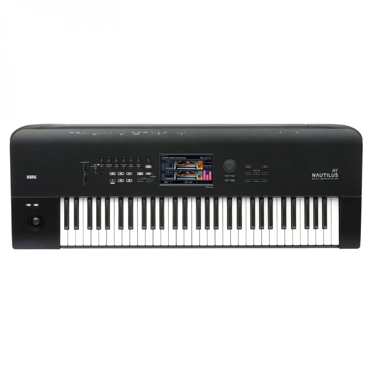 NAUTILUS-61 l’evoluta workstation KORG è ora disponibile in versione NAUTILUS-61 AT con tastiera 61 tasti e Aftertouch. L’ampia libreria sonora interna è stata ottimizzata per sfruttare questa nuova risorsa. NAUTILUS-61 AT adotta 9 generatori sonori con Smooth Sound Transition per il passaggio continuo fra i suoni, ed una potente sezione DSP che genera fino a 16 effetti simultanei. L’interfaccia utente è basata su Display Touch a colori e controlli rotativi, mentre 128 Set List organizzano e gestiscono le risorse per i Live. NAUTILUS-61 AT è dotato di un versatile Sequencer MIDI&Audio, Full Editing per comporre o arrangiare con facilità e possibilità di integrazione negli ambienti DAW più diffusi.